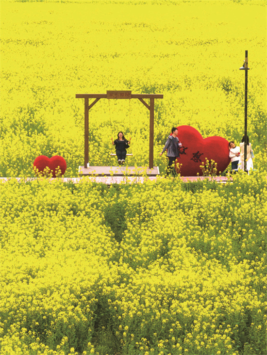 这片花海中,布置了许多可以打卡拍照的装置,吸引了许多市民游客过来游玩。